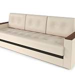 Стильный диван Атланта, прямой, с надежным механизмом трансформации «еврокнижка» предназначен для ежедневного использования. Гармоничный вид украсит любой интерьер, сделает атмосферу теплой и уютной. Светлый оттенок основной ткани красиво контрастирует с насыщенным цветом натурального дерева, который выбран для накладок подлокотников из МДФ и вставкой из темной экокожи, проходящей по низу. Модель оснащена ящиком для постельных принадлежностей. Купить красивое изделие недорого можно в нашем магазине. Габаритные размеры, фактуру и оттенок обивочной ткани, а также наполнение подушек и спального места можно изменить при оформлении заказа.