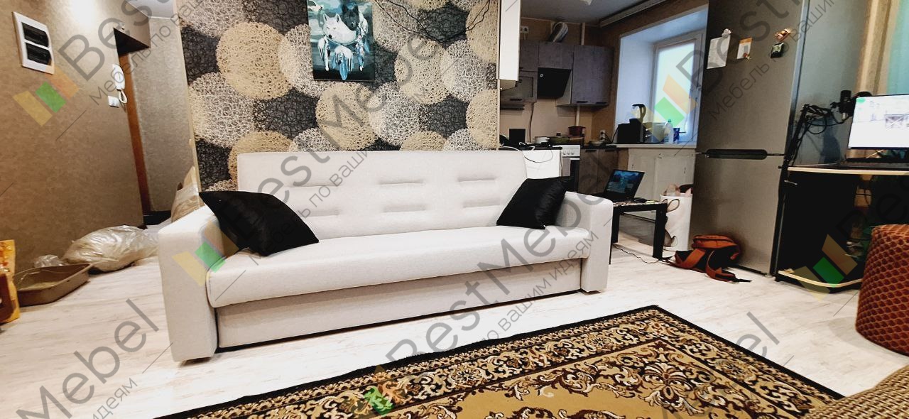 Заказ 00000410348 Отличный диван! Долго искали такую модель, хотели именно книжку, но их сейчас трудно найти в хорошем исполнении. Огромный плюс, что можно подобрать ткань по цвету и фактуре. Диван очень удобный, не проваливается когда садишься, легко моется. Еще большим плюсом для нас было то, что можно увеличить размер дивана при заказе, мы заказали шириной 240см.