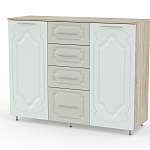 Комод Берк-2 BMS с изящной фрезеровкой на фасаде по достоинству оценят поклонники классики. Вместительный трехсекционный комод, выполненный в светло-бежевой гамме, оборудован одним большим выдвижным ящиком и тремя малыми, а также распашными секциями с полками. Опоры с регулировкой высоты скорректируют неровности пола и придадут комоду устойчивость. Купить комод Берк-2 BMS для меблировки гостиной, спальни или прихожей вы сможете на сайте нашего интернет-магазина.
