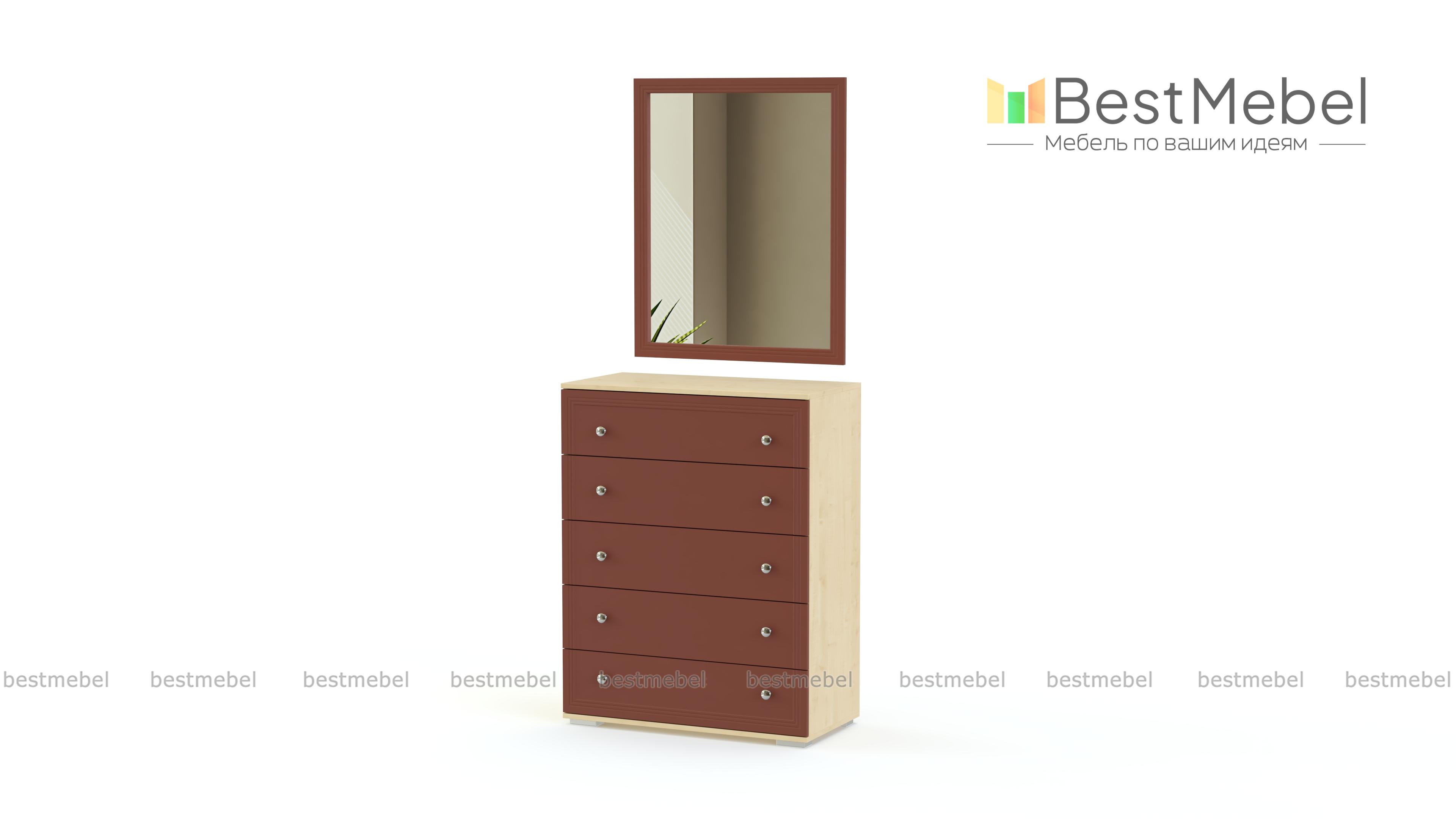 Комод Карина 2 BMS подходит для меблировки небольших помещений благодаря компактным размерам. Модель оборудована пятью выдвижными ящиками для хранения домашнего текстиля и разнообразных бытовых мелочей, а дополнение в виде навесного зеркала позволяет использовать его как туалетный столик. Выполненный из материалов в светлых белых тонах, комод декорирован неброской рамочной фрезеровкой и оснащен ручками-кнопками. Купить комод Карина 2 BMS приглашаем в наш интернет-магазин с выбором цвета и фурнитуры.