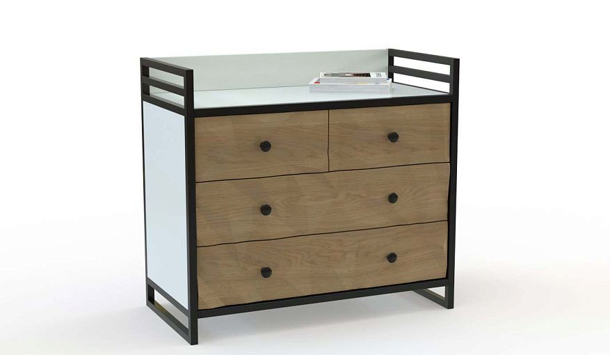 Комод Лекси 2 BMS – это модель с ярким характером, которая не останется незамеченной в интерьере современного лофта. Выполненный из износостойкой ламинированной плиты и дополненный фрезерованным 3D фасадом, комод усилен металлическим каркасом с декоративными перекладинами. Два больших и два малых выдвижных ящика, а также ограниченная бортиками столешница сделают хранение вещей максимально удобным. Купить комод Лекси 2 BMS вы сможете на сайте нашего интернет-магазина, подобрав цвет и размеры.