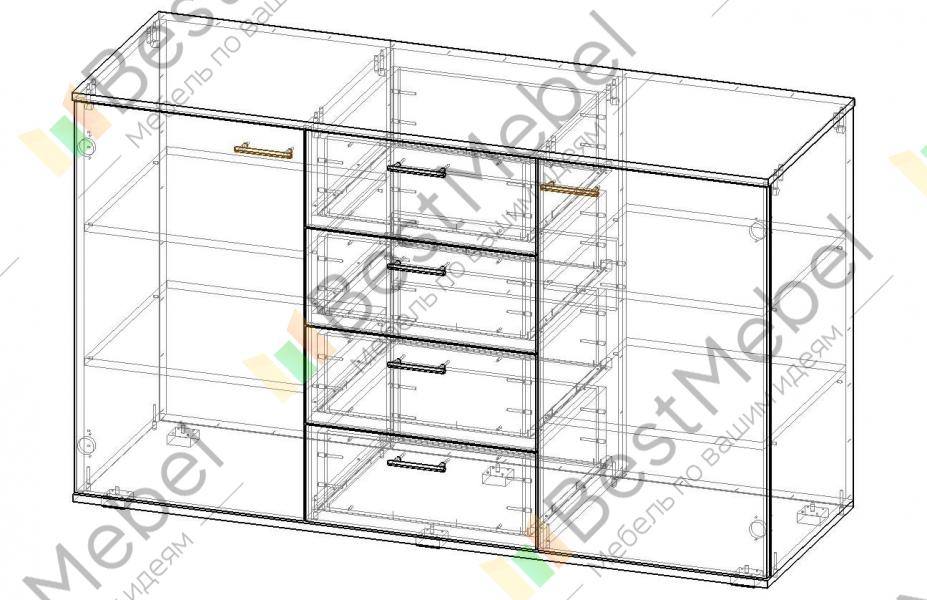 Комод Михаил-Люкс №30 BMS – это образец безупречного современного стиля. Такая мебель сейчас актуальна как никогда. Смелые глянцевые фасады отражают окружающую обстановку. А черный цвет базового варианта будет эффектно выделяться на фоне светлых стен. При этом комод очень вместительный. В центральной части расположены выдвижные ящики. С боков расположены вместительные распашные отделения с глухими фасадами, внутри которых расположены полки. На поверхности комода можно установить телевизор, сэкономив тем самым на тумбе под ТВ. Заказать комод Михаил Люкс №30 можно в нашем интернет-магазине.