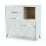 Комод Орфей 3 BMS - эффектная и вместительная модель в современной эстетике. Вместительные выдвижные ящики, секция с распашной дверцей и просторная ниша расположены асимметрично, создавая узнаваемый, но при этом достаточно универсальный дизайн. В оформлении комода светлого базового оттенка использованы геометрическая фрезеровка и теплые древесные акценты. Купить комод Орфей 3 BMS вы сможете в нашем интернет-магазине, самостоятельно подобрав цвета и размеры.