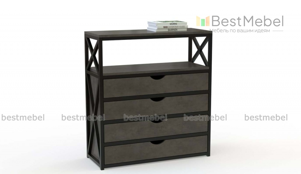 Комод Ульяна 14 BMS – это эстетика индустриального стиля и простой удобный функционал. Модель в трендовом оттенке с имитацией камня располагается на прочном металлокаркасе с декоративными перекрестьями. Четыре выдвижных ящика, оснащенных полукруглыми вырезными ручками, и просторная открытая секция под столешницей компактно разместят всевозможные бытовые вещи, книги и предметы декора. Купить комод Ульяна 14 BMS вы сможете в нашем интернет-магазине, подобрав цвет и размеры.