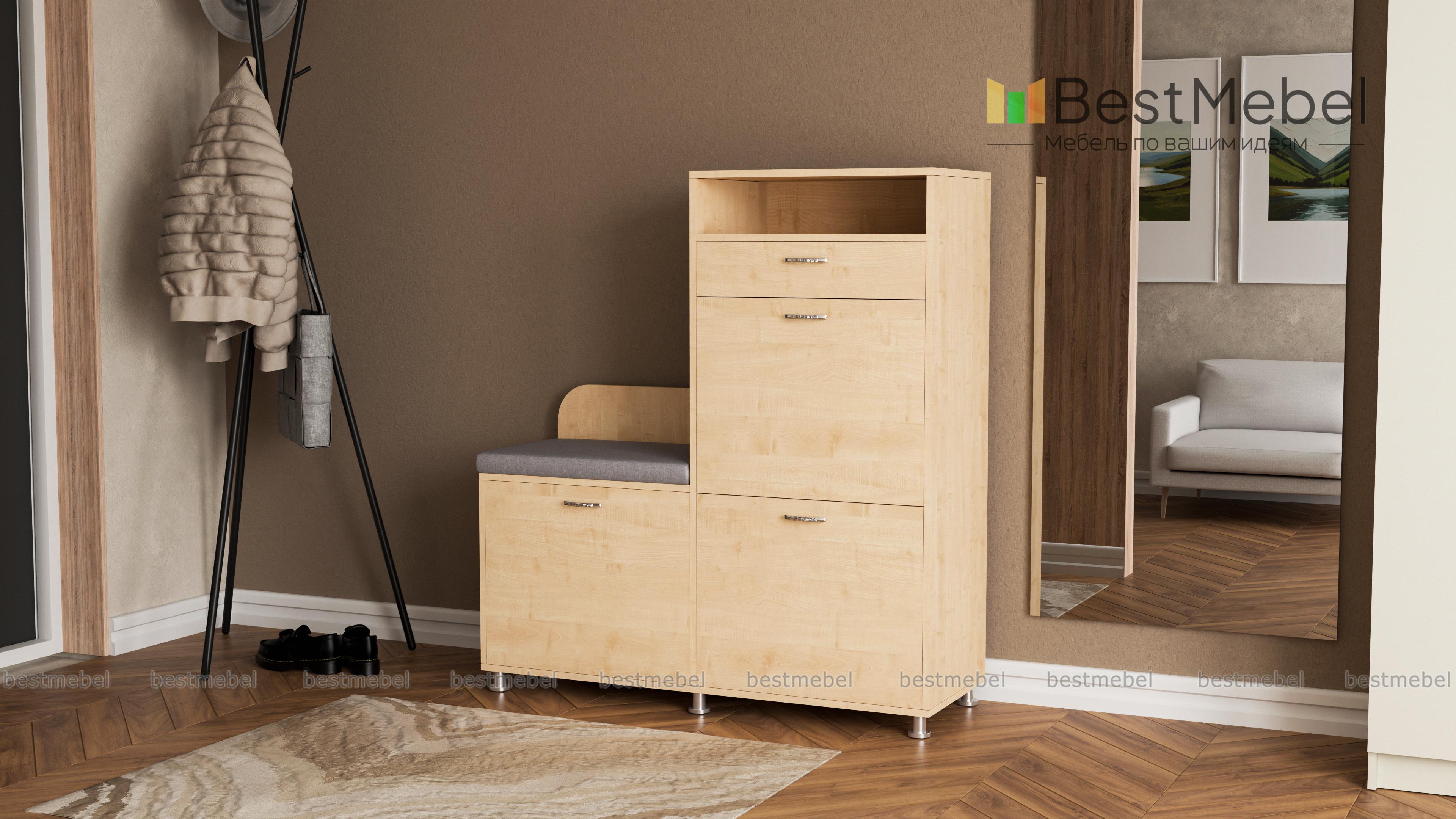 Обувница Чио 5.10 BMS станет выбором тех, кто ценит в мебели функциональность и поможет сэкономить пространство. Комбинированная модель оборудована тремя откидными отделениями под обувь, выдвижным ящиком и нишей для хранения уходовых средств, а также сиденьем с мягкой обивкой и безопасно скругленной спинкой. Обувница располагается на регулируемых опорах и выполнена в нейтральных древесных тонах. Купить обувницу Чио 5.10 BMS для комфортной прихожей приглашаем в наш интернет-магазин.