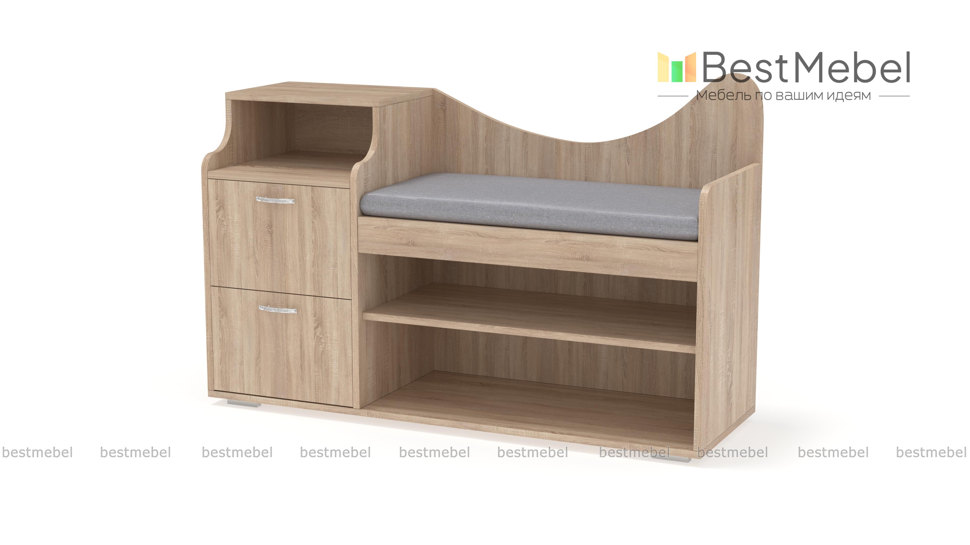 Обувница Луиза 2 BMS привлекает элегантным и функциональным дизайном. Комбинированная модель объединила открытые обувные полки, два выдвижных ящичка для хранения мелочей, нишу и комфортное сиденье с мягкой обивкой в ткани. Эффектный вид обувнице, выполненной в насыщенных темных тонах, придают фигурно вырезанная спинка и скругленные боковины. Купить обувницу Луиза 2 BMS и рационально организовать пространство вам поможет наш интернет-магазин.