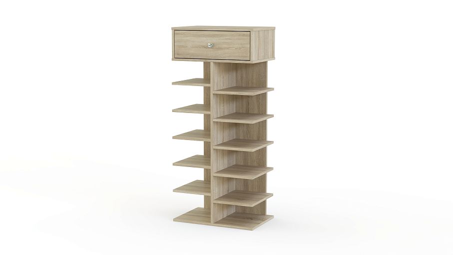 Обувница Мишель BMS представляет собой оригинальный стеллаж и станет креативным дополнением входной зоны в современной квартире. Визуально легкая модель в светлых древесных тонах оборудована открытыми обувными полками, которые позволят быстро найти нужную пару, и выдвижным ящиком с ручкой-кнопкой для хранения уходовых средств и аксессуаров. На столешнице смогут разместиться важные мелочи или предметы декора. Купить обувницу Мишель BMS по демократичной цене приглашаем к нам в интернет-магазин.