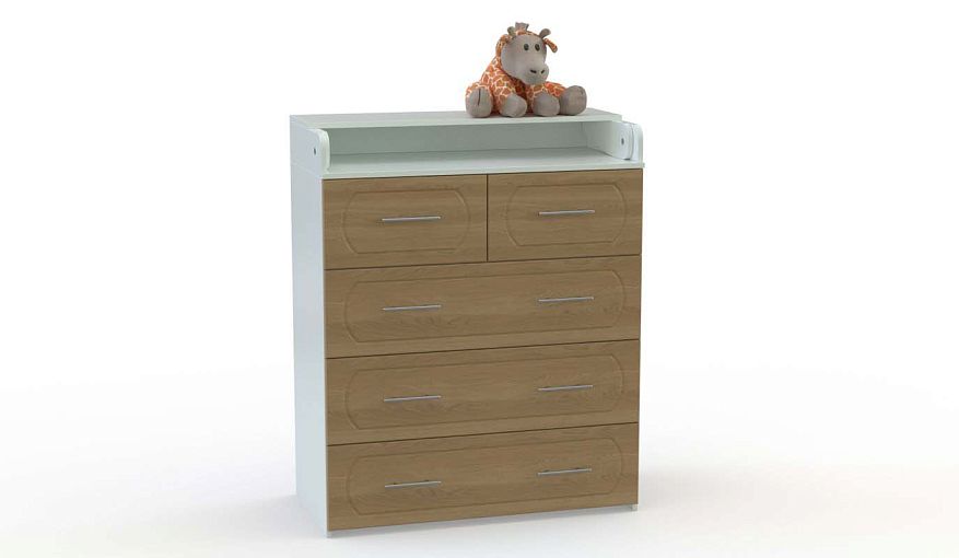 Пеленальный комод Карлсон 2 BMS – яркая модель с классической фрезеровкой на фасаде и парными ручками-рейлингами. Для безопасности малыша откидной пеленальный столик оборудован скошенными и закругленными бортиками. Удобное хранение необходимым под рукой средствам гигиены и прочим мелочам обеспечат два малых выдвижных ящика, а три больших предусмотрены для пеленок, одежды или игрушек. Купить пеленальный комод Карлсон 2 BMS вы сможете недорого в нашем интернет-магазине.