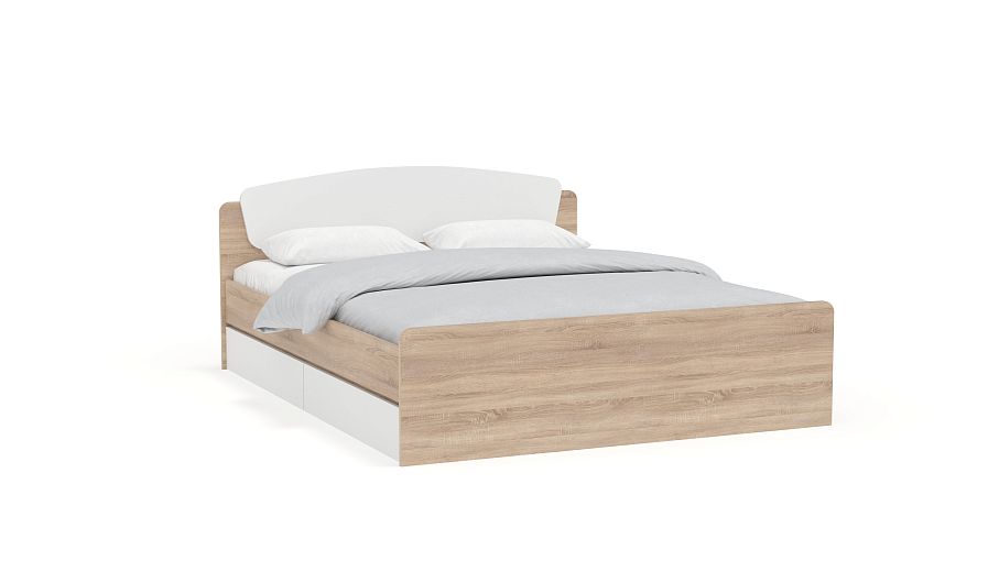 Комфортная модель в бело-бежевой гамме Астория Омни BMS подойдет и классическому, и современному интерьеру спальни благодаря гармоничному сочетанию простой формы и легкого декора. Для удобного размещения постельных принадлежностей кровать дополнена четырьмя вместительными выкатными ящиками в основании. Спинка в изножье отсутствует, изголовье оригинально оформлено полукруглой накладкой в тон. Модель надежной конструкции по демократичной цене ждет вас в нашем интернет-магазине.