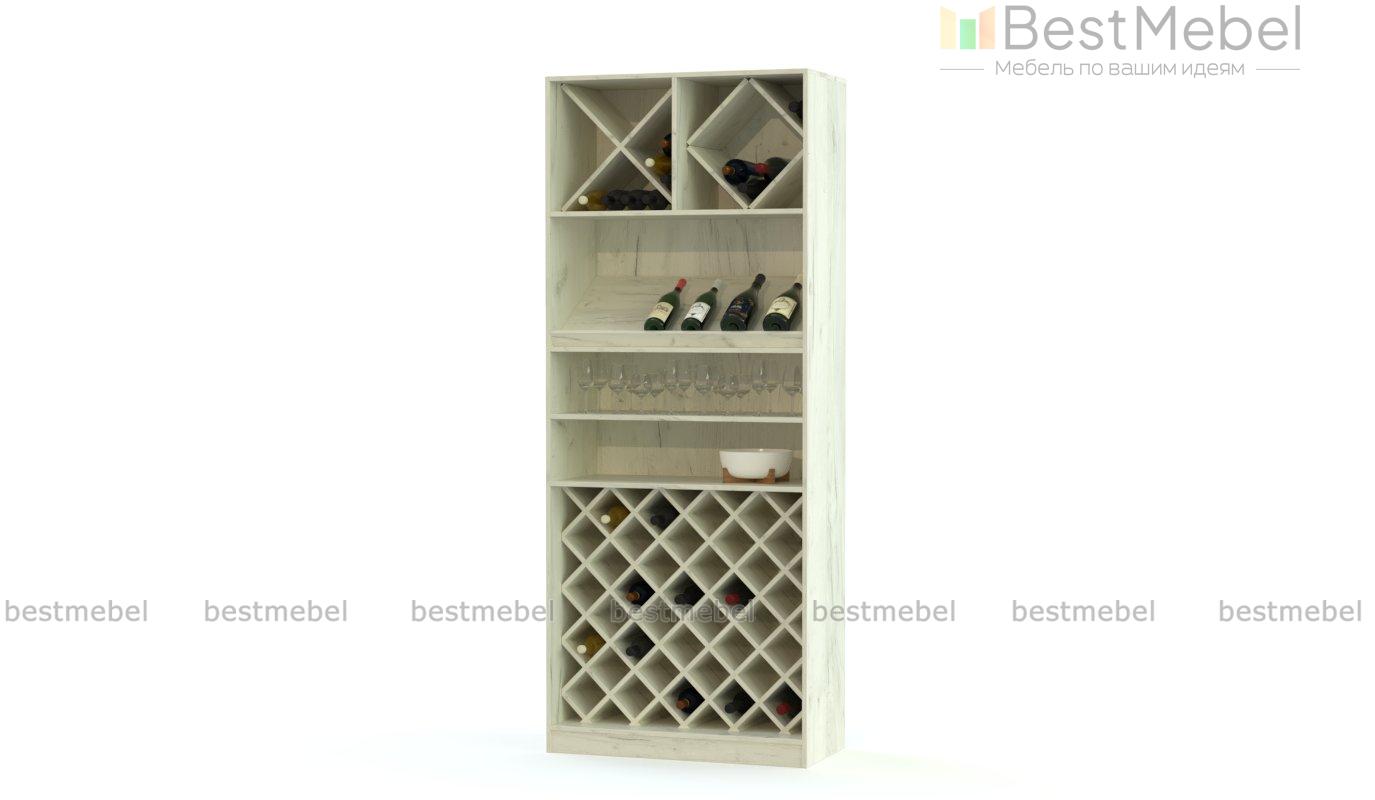 Шкаф Дионис 2 BMS в темном оттенке с имитацией камня станет акцентным предметом в интерьере современной кухни или гостиной. Вместительный открытый шкаф оборудован прямыми полками под бокалы, посуду и аксессуары, наклонной полкой с защитным бортиком и крестовыми полками, в которых бутылки с винами могут располагаться по одной или несколько штук. Практичная конструкция модели обеспечивает удобный доступ к содержимому полок и безопасное хранение. Купить шкаф Дионис 2 BMS для хранения коллекции вин вы сможете в нашем интернет-магазине.