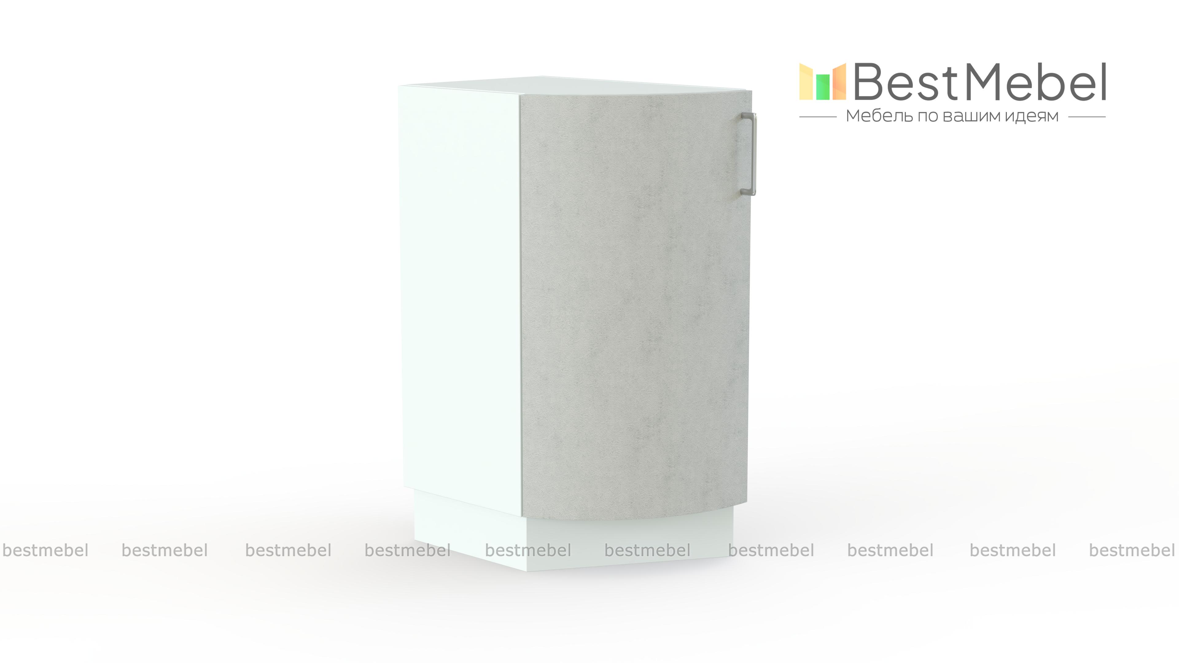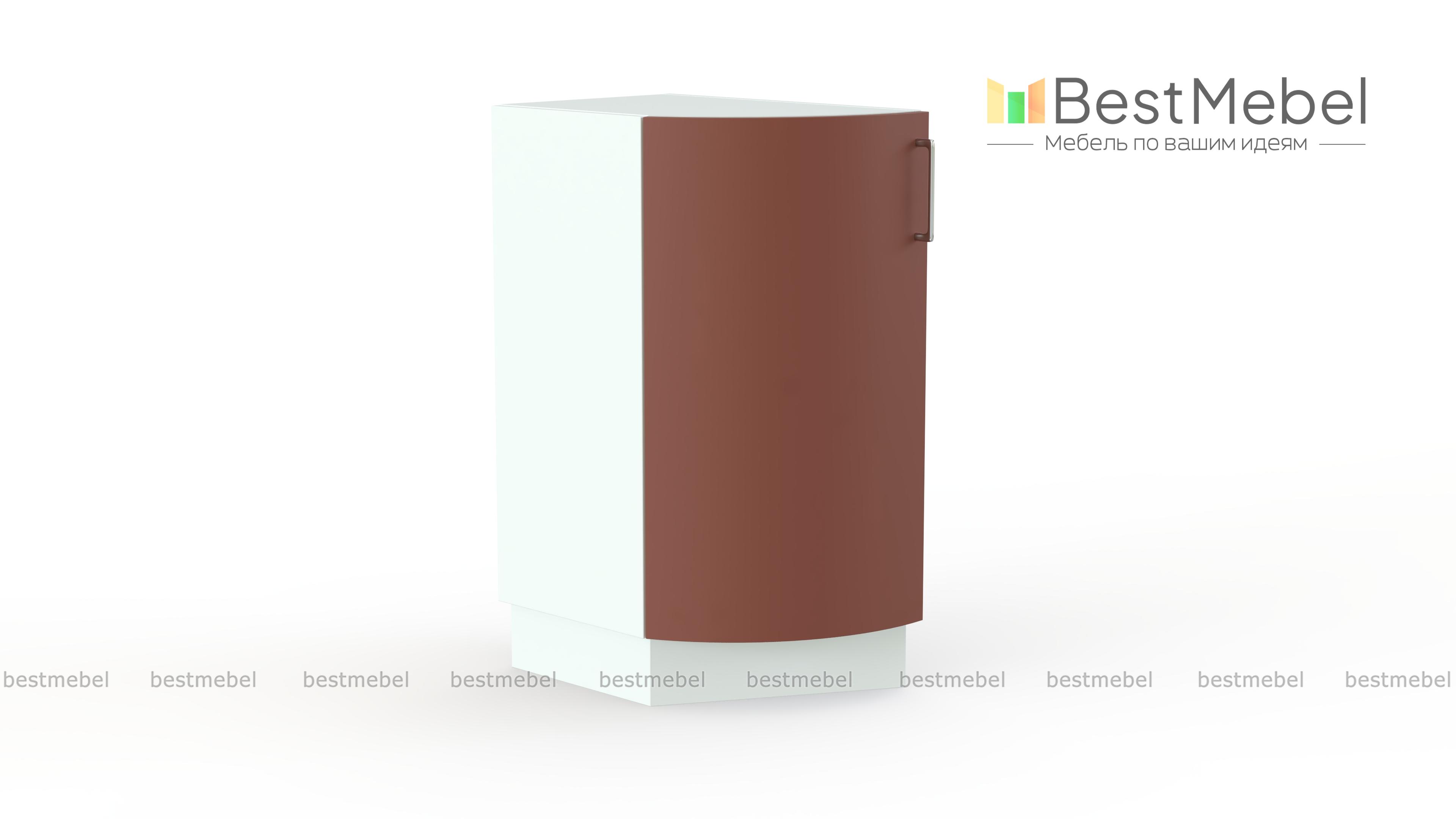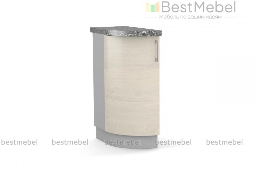 Стол торцевой радиусный Арт BMS станет элегантным окончанием нижнего ряда модульного комплекта для кухни и придаст всей композиции завершенный вид и визуальную легкость. Оригинальная модель с гнутым фасадом безопасно сгладит острые углы, а распашное отделение с полкой разместит необходимые кухонные мелочи. Лаконичный дизайн и нейтральная расцветка органично впишутся в современные интерьеры. Купить стол торцевой радиусный Арт BMS по отличной цене вы сможете в нашем интернет-магазине.
