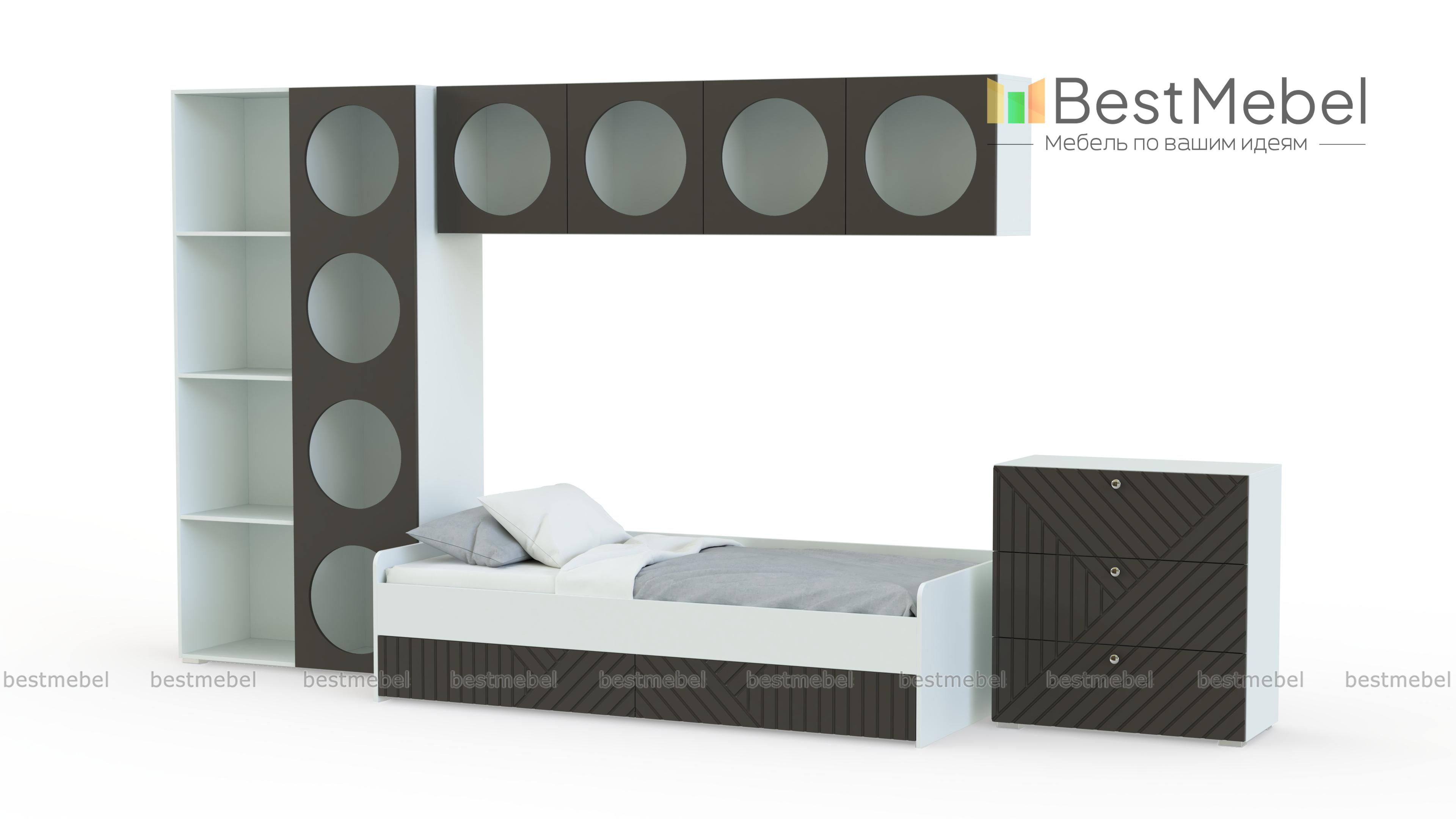 Детская комната Авелин 6 BMS сочетает практичность с современной эстетикой. Композиция из стеллажа, двух навесных полок, кровати с ящиками и бельевого комода позволяет выделить зону отдыха и удобно разместить вещи ребенка. Природные оттенки в отделке создают уютную атмосферу, а динамики дизайну придают круглые вырезы и геометрический рисунок. Купить детскую комнату Авелин 6 BMS вы сможете на нашем сайте, подобрав необходимые размеры, цвета и тип ручек.
