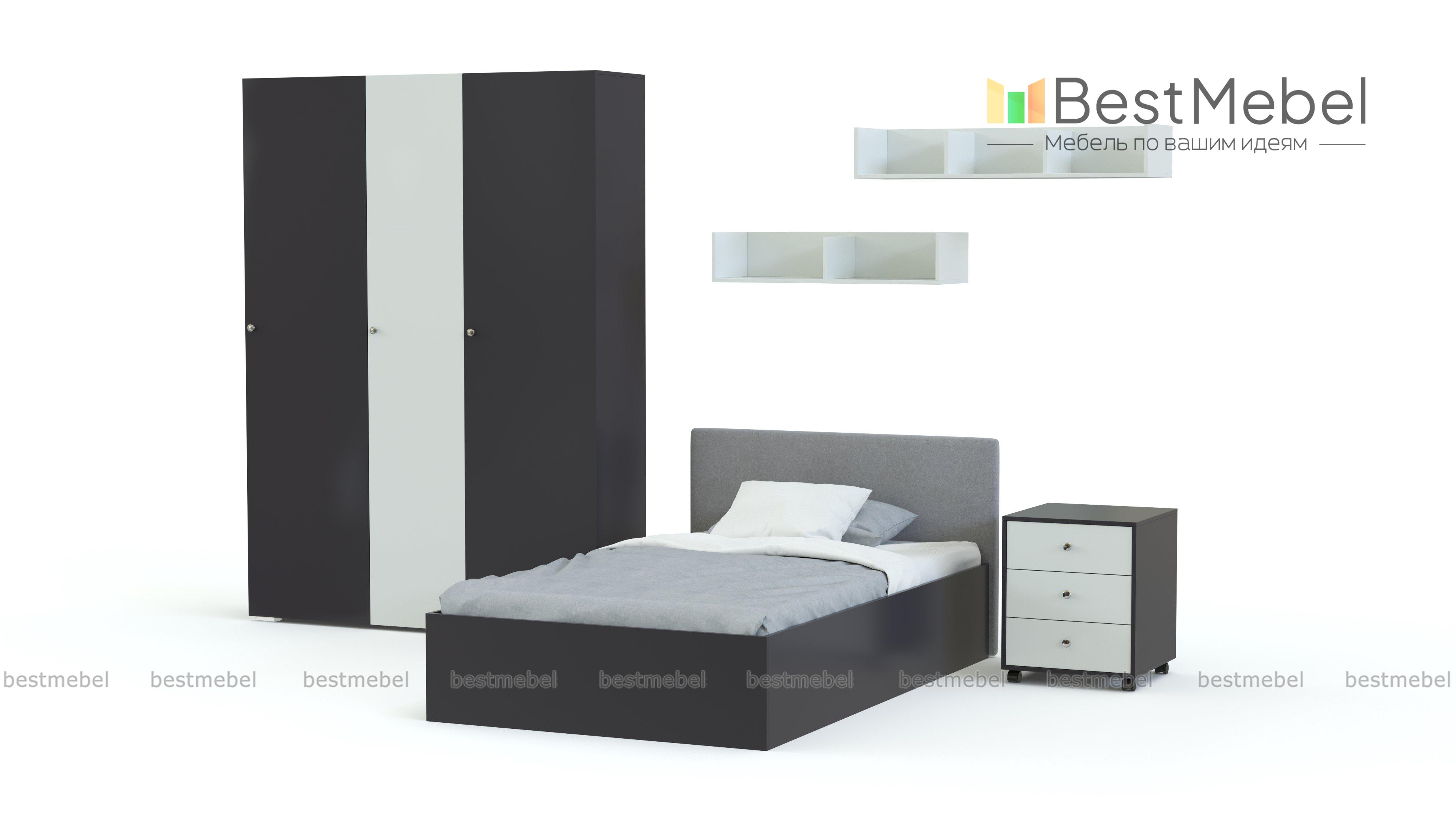Детская комната Стайн 2 BMS – отличный молодежный вариант, в котором сочетаются практичность, надежность и актуальный дизайн. Модульная композиция включает в себя кровать с бельевыми ящиками в основании и мягкой обивкой изголовья в экокоже, прикроватную тумбу, навесные книжные полки и шкафную группу с торцевым стеллажом и отделениями для хранения одежды на плечиках и в сложенном виде. Купить детскую комнату Стайн 2 BMS, выполненную в сочетании древесных тонов и белых вставок, приглашаем в наш интернет-магазин по доступной цене.