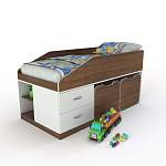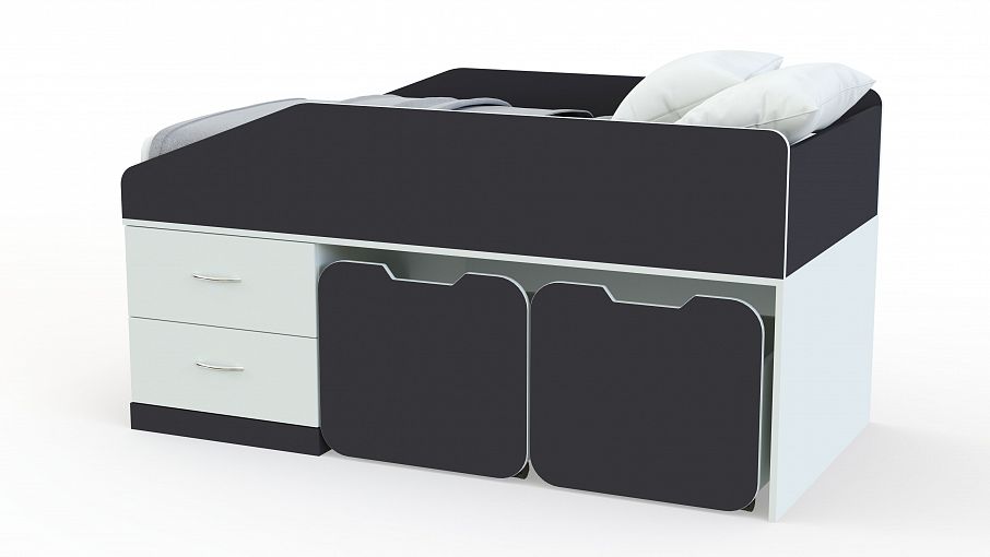 Детская кровать-чердак Миф 8 с полками BMS поможет рационально организовать пространство небольшой спальни. Модель оборудована комфортным, ровным спальным местом с защитными бортиками, а в основании располагаются торцевые полочки, тумба и два вместительных выкатных ящика для игрушек или постельных принадлежностей. Навесные открытые полки удобны для книг и декоративных мелочей. Поверхности скруглены по углам и обработаны защитным кантом. Купить детскую кровать-чердак Миф 8 с полками BMS вы сможете в нашем интернет-магазине, подобрав цветовое решение.