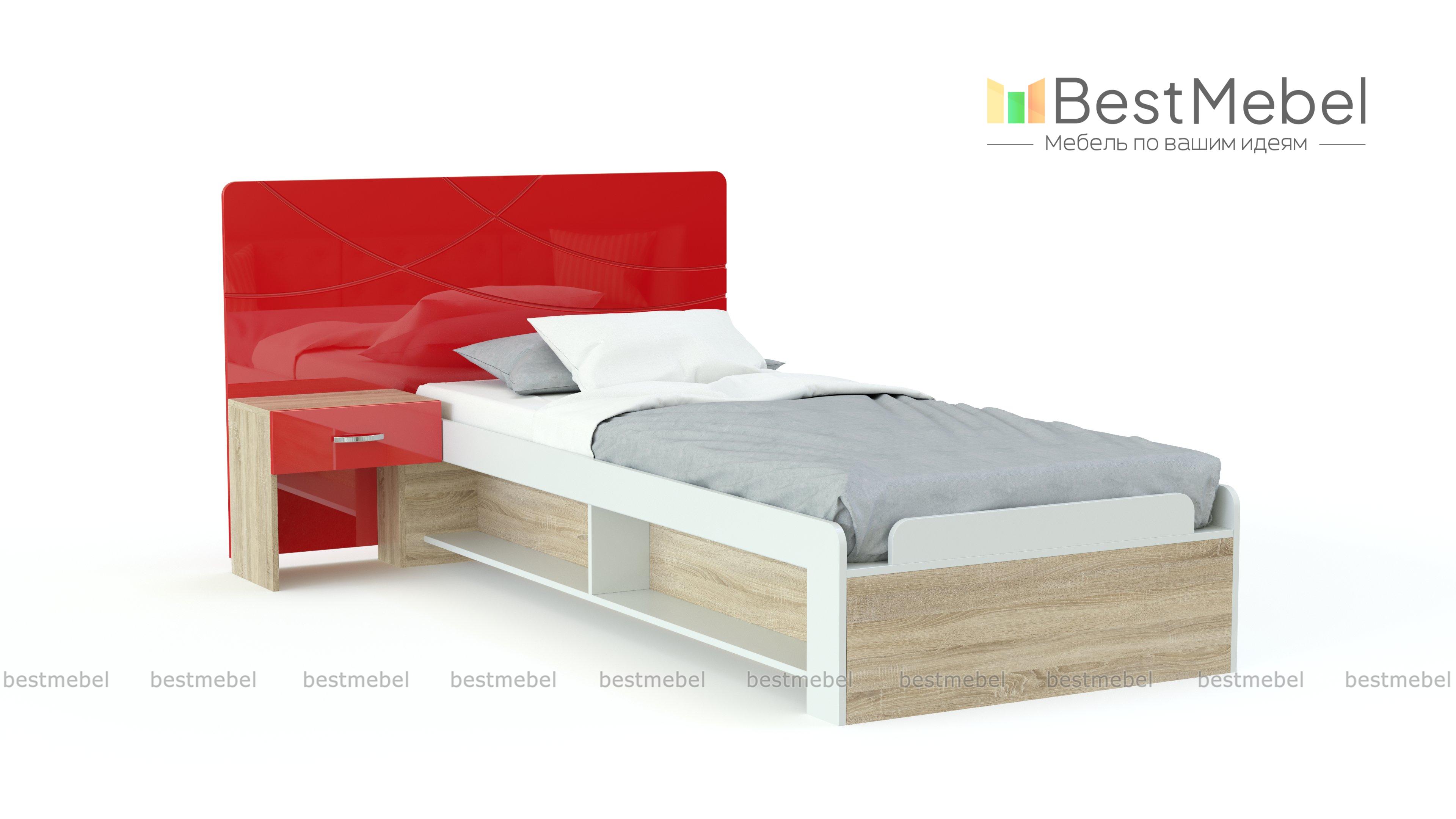 Детская кровать F-L-20 BMS изумляет своим лаконичным продуманным дизайном и практичностью! Комфортное спальное место (90 х 190 см) с основанием из ЛДСП оборудовано небольшими бортиками. Высокое изголовье со скругленными углами сделано из МДФ, оснащено маленькой полкой, где ребенок с легкостью расположит нужное. В конструкцию удачно вписана тумба с одним выдвижным ящиком для личных вещей. Сбоку модели две открытые ниши – здесь можно расставить книги. Цветовая гамма фасадов – зеленая, матовая поверхность. Есть другие варианты.
