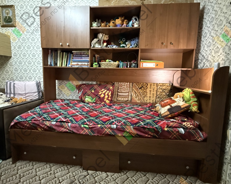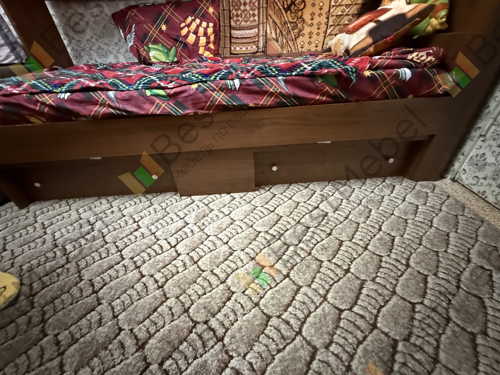 Кровать идеальна для маленькой комнаты!!! Все вещи в полках, книжки, игрушки - все влезло! К сожалению, попали в какой-то предновогодний ажиотаж и ждали изготовления почти 2 месяца. Собирал сам муж, у него есть вопросы к инструкции по сборке: не соответствуют детали номерам. И хрупкая очень , чуть ударил - тут же скол(((
