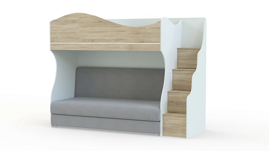 Детская кровать с диваном Дон Кихот 15 BMS объединила в стильной композиции комфортную зону отдыха и систему хранения. На втором ярусе располагается спальное место с фигурным бортиком, а в нише на первом – удобный двухместный диванчик. Легко забраться на второй ярус и разместить игрушки или книги поможет ребенку лестница-комод. В оформлении скомбинированы корпус практичного светлого оттенка и нейтральный древесный фасад. Купить детскую кровать с диваном Дон Кихот 15 BMS приглашаем в наш интернет-магазин.