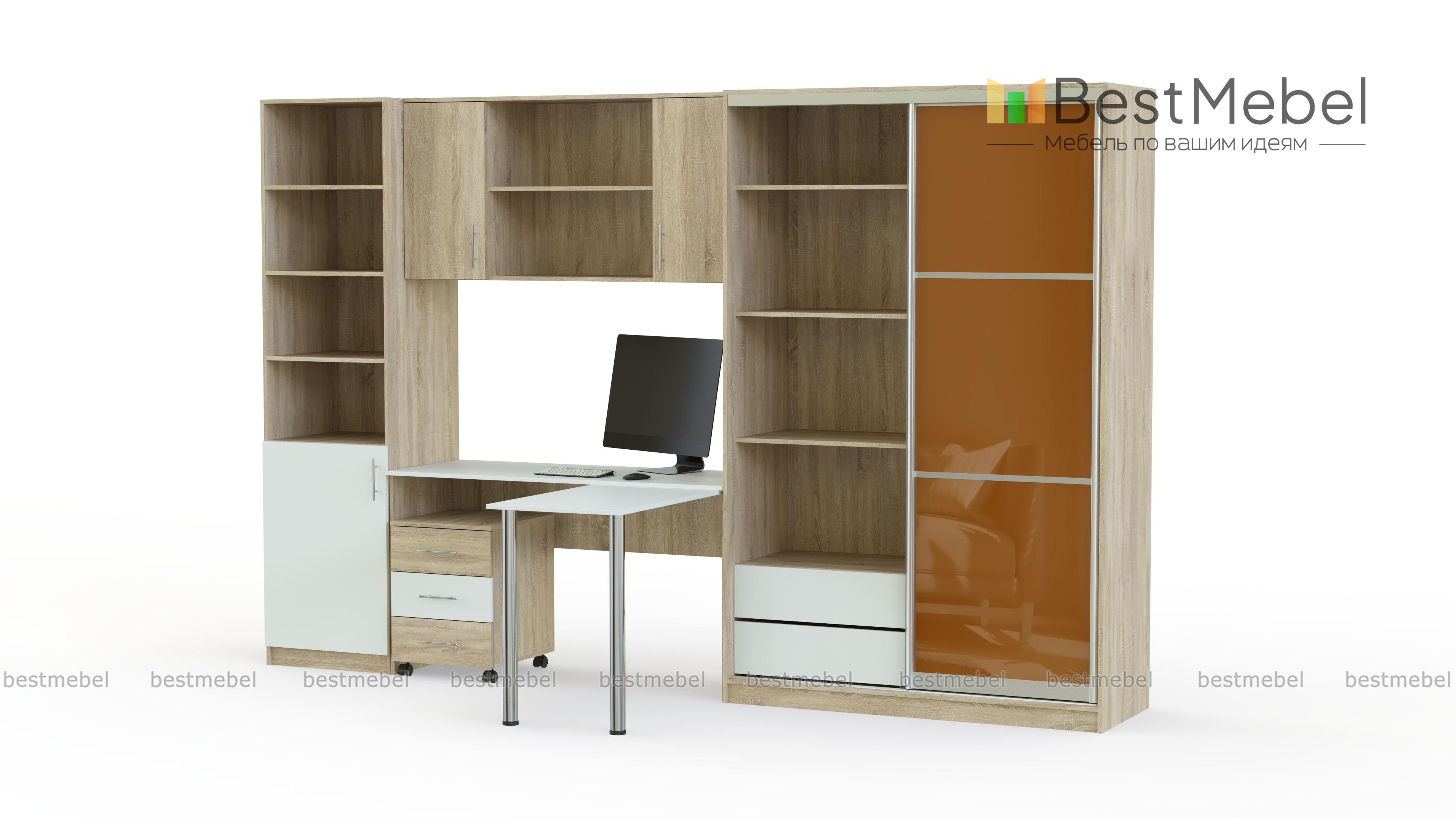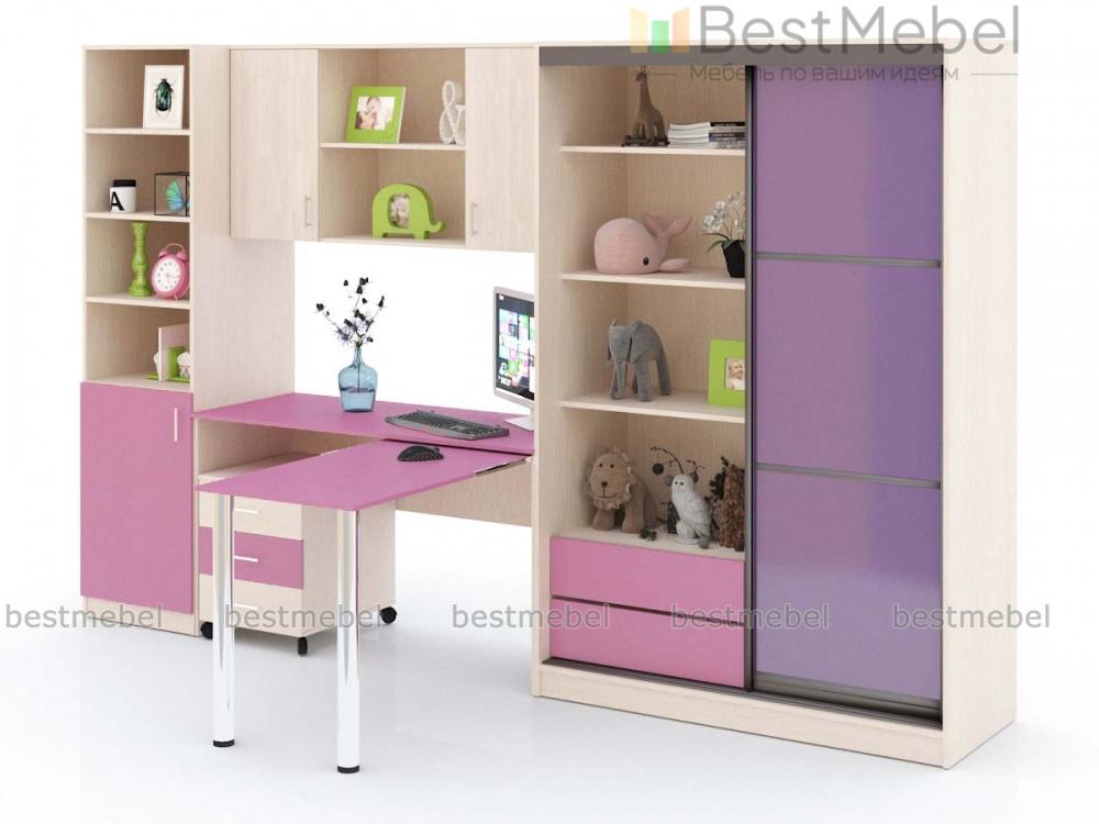 Детская стенка Лаванда BMS поможет легко организовать комфортное рабочее место и разместить гардероб девочки. Просторная стенка оборудована письменным столом с мобильной тумбой, надстройкой с открытыми полками и распашными отделениями для личных вещей, шкафом-купе и стеллажами. Корпус универсального белого оттенка дополняют древесные и яркие глянцевые фасады. Купить детскую стенку Вероника 2 BMS приглашаем в наш интернет-магазин, подобрав цветовое решение.