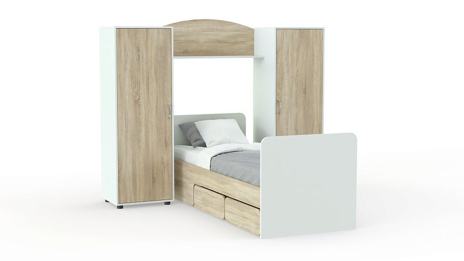 Детская кровать Миф 27 BMS – это простая и функциональная композиция для небольшой комнаты. Комплект включает в себя два симметрично расположенных пенала, оборудованных полками и штангой для одежды, кровать с парой выдвижных ящиков для постельных принадлежностей или игрушек в основании и межсекционную книжную полку. Лаконичный дизайн и разнообразие цветовых решений делают модель универсальной. Купить детскую кровать Миф 27 BMS вы всегда сможете в нашем интернет-магазине по доступной цене.