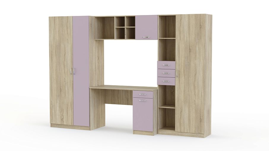 Вместительная и функциональная детская стенка Симба Композиция 1 BMS решит в комнате ребенка проблемы с размещением рабочего места и хранением самых разнообразных вещей. В комплект входят письменный стол с тумбой, комбинированный стеллаж, навесная полка и двухдверный одежный шкаф. Книги, игрушки, школьные принадлежности и предметы гардероба всегда будут в порядке и под рукой. Не оставит равнодушными детей и взрослых и яркая, контрастная расцветка фасадов.