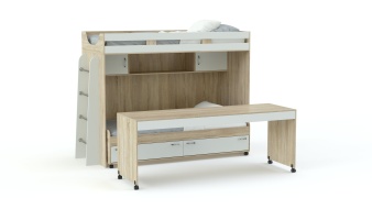 Двухъярусная кровать со столом Фанни 9 BMS гармонично впишется в интерьер современной детской и обеспечит значительную экономию пространства. На втором ярусе располагается спальное место с бортиком, добраться до которого поможет лестница с металлическими перекладинами, а в нише на первом – книжная полка и выкатная кровать с бельевыми ящиками в основании. Дополняет практичную композицию письменный стол с колесными опорами. Купить двухъярусную кровать со столом Фанни 9 BMS для комфортного сна и учебы детей приглашаем в наш интернет-магазин.