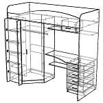 Кровать-чердак с рабочей зоной Мираж К5 BMS выгодно отличается компактными размерами и практичной комбинированной конструкцией. Модель 3 в 1 объединила комфортное спальное место, устойчивую лестницу с хромированными перекладинами, расположенное на втором ярусе, распашной шкафчик для одежды и рабочую зону с письменным столом и книжной полкой. Выполненная в контрастных древесных тонах, кровать гармонично впишется в интерьер современной детской. Купить кровать-чердак с рабочей зоной Мираж К5 BMS приглашаем в наш интернет-магазин.