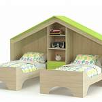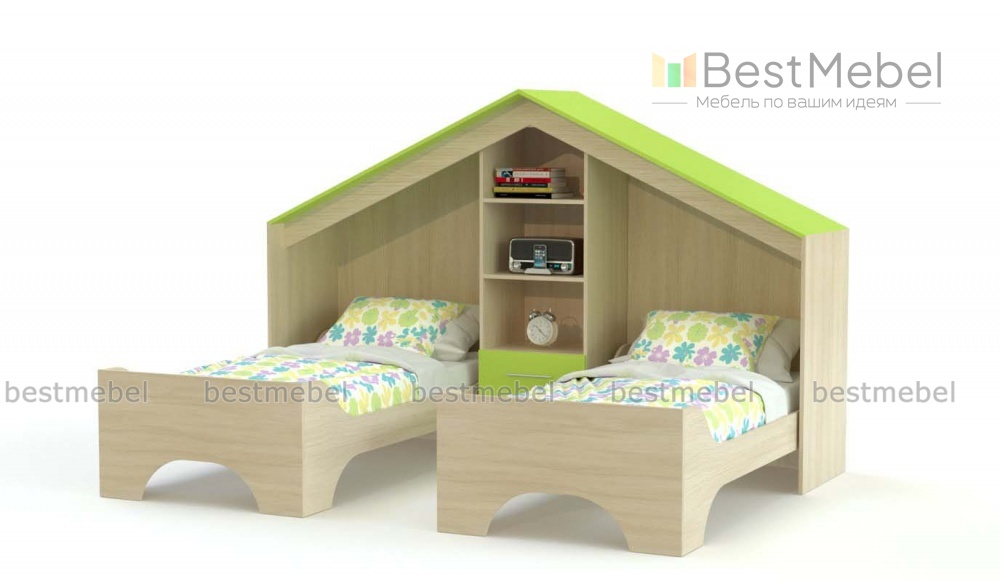 Кровать-домик Марс 11.2 BMS поможет вам нестандартно подойти к организации пространства и обустроить уютную спальню сразу для двоих малышей. Под крышей уютного «домика» располагаются две кровати, разделенные стеллажом с книжными полками и выдвижными ящиками для мелочей. Выполненная в светлых древесных тонах с яркими лаймовыми акцентами, модель гармонично вписывается в комнату мальчиков или девочек. Купить кровать-домик Марс 11.2 BMS приглашаем к нам в интернет-магазин.