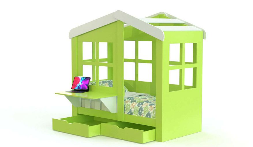 Кровать-домик Поль 12.8 BMS с большими прорезными «окнами» по периметру смотрится невесомой и предоставляет широкий простор для декорирования. На первом ярусе домика располагается просторное спальное место с защитным бортиком, а в основании – два вместительных выкатных ящика для игрушек или постельных принадлежностей. Закрепленный на фронтальной части столик удобен для учебы, игры или творческих занятий. Купить кровать-домик Поль 12.8 BMS приглашаем в наш интернет-магазин.