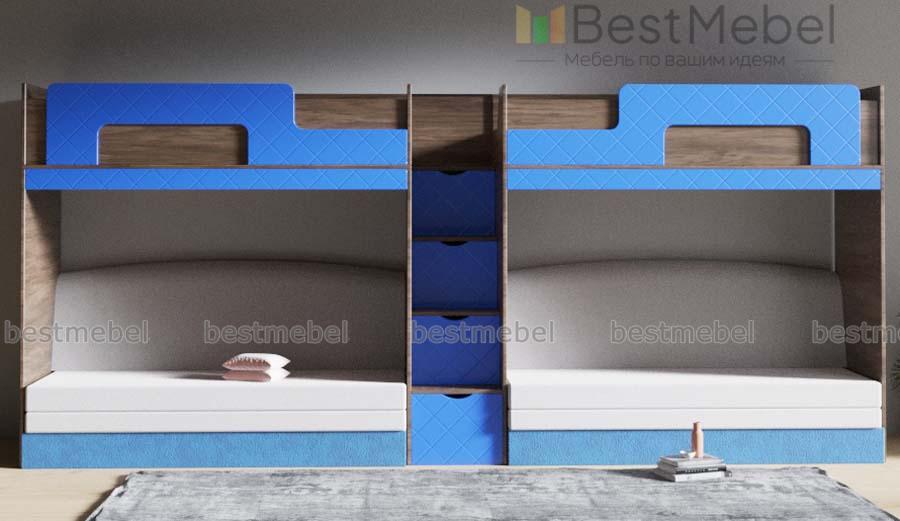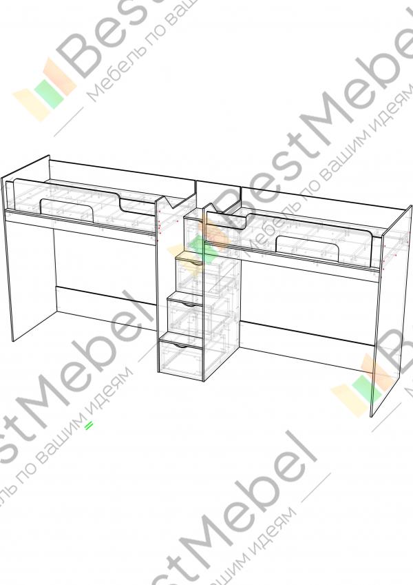 Кровать с диваном Софти 05 BMS – это многофункциональная композиция, включающая в себя двухъярусную кровать и лестницу-комод с вместительными ящиками для игрушек под ступеньками. На верхнем ярусе располагается просторное спальное место, а нижний оборудован раскладным диваном, который легко превращается в дополнительную кровать. Практичная модель может использоваться самостоятельно или комбинироваться с другими элементами. Купить кровать с диваном Софти 05 BMS, украшенную по фасаду фрезеровкой, приглашаем в наш интернет-магазин.