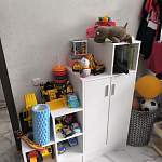 Стеллаж отличный, качество и крепления офигенные. Размер нашего шкафчика 110*120*45. Даже задние стенки не тонкий двп, а полноценные детали шкафчика, что позволяет установить шкаф и поперек комнаты. Но нет подробной инструкции, пришлось помучится со сборкой (сборка идет от низких ящиков). Хотелось бы более подробную что и как собирать. Также не хватило пару саморезов для установки ограничителей.