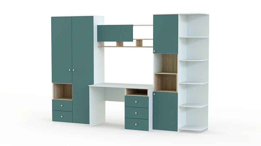 Модульная детская Космос 01 BMS выполнена из экологичных материалов и не оставит равнодушными детей и взрослых благодаря креативному современному дизайну. Комплект станет отличным дополнением комнаты школьника и позволит разместить предметы гардероба и все необходимое для учебы и творческих занятий. Детская оборудована компьютерным столом с тумбой, двухдверным комбинированным шкафом, навесной секцией, стеллажом с открытыми полками и дверцами и торцевым элементом. Особенность композиции – цветные фасады с круглыми ручками в оттенке металлик. Купить модульную детскую Космос 01 BMS, обеспечив юным исследователям хорошее настроение, вы сможете в нашем интернет-магазине.