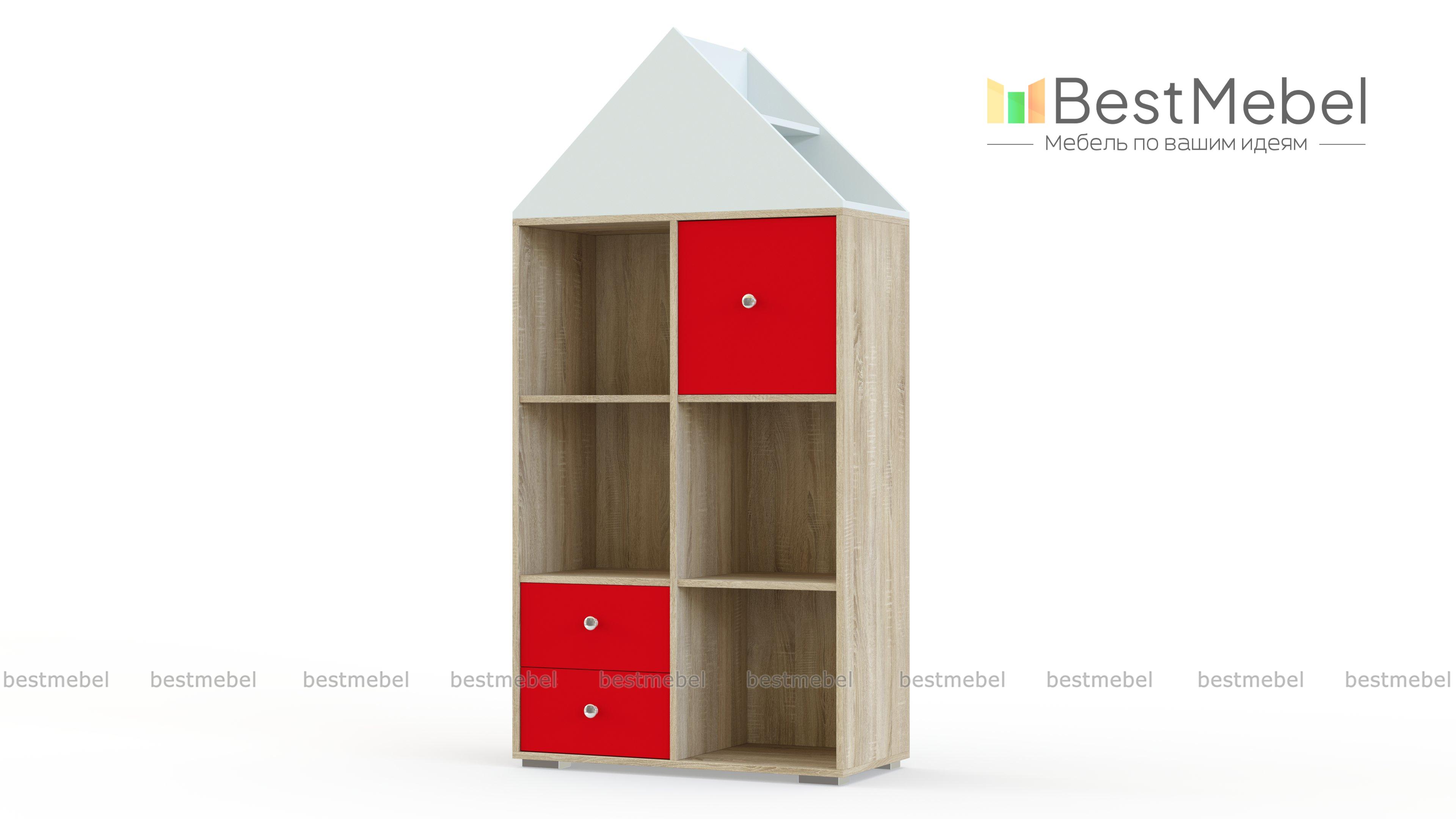 Стеллаж Салли 1 BMS станет частью не только системы хранения, но и игровой зоны. Модель для уютной современной детской выполнена в форме домика и гармонично сочетает в оформлении светлые древесные тона, белый и цветной корпус. Для удобного хранения книг, игрушек и принадлежностей для творчества предусмотрены просторные ниши, выдвижные ящички, распашное отделение и открытые полки. Купить стеллаж Салли 1 BMS приглашаем в наш интернет-магазин по доступной цене.