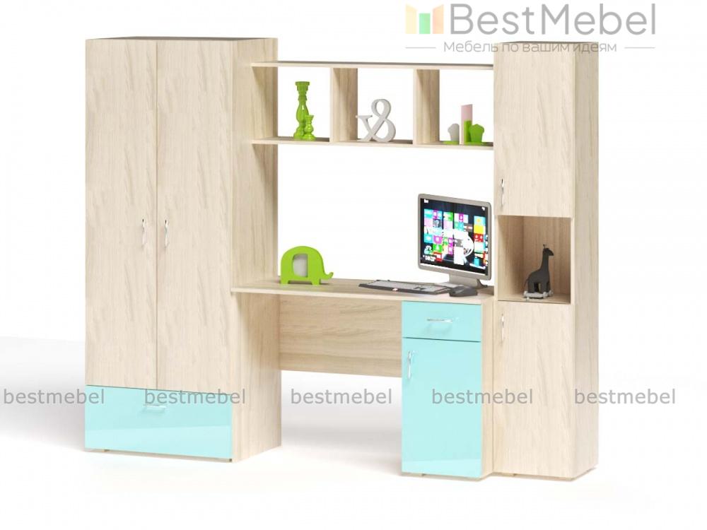 Легкий и изящный комплект, выполненный в нежных тонах и декорированный по фасадам шелковистым материалом, подойдет комнате юной леди. Простой и лаконичный по форме, он включает все необходимые для учебы, хранения гардероба, школьных принадлежностей и игрушек элементы. Элегантный письменный стол с тумбой, двухдверный одежный шкаф, открытые полки и вместительный пенал детской стенки Ариэль BMS вместе составляют гармоничную комбинацию и станут стильным акцентом современного дома.