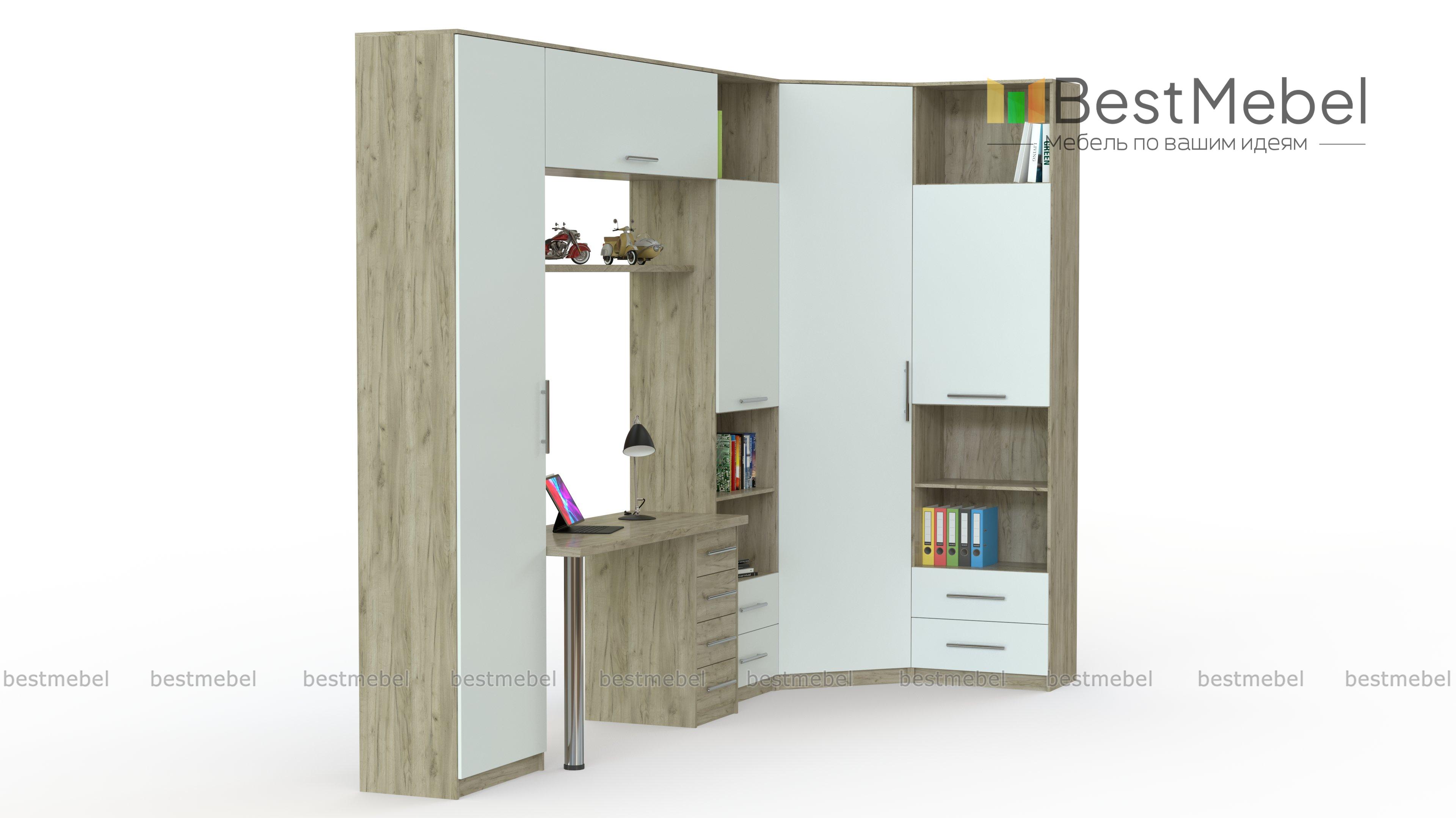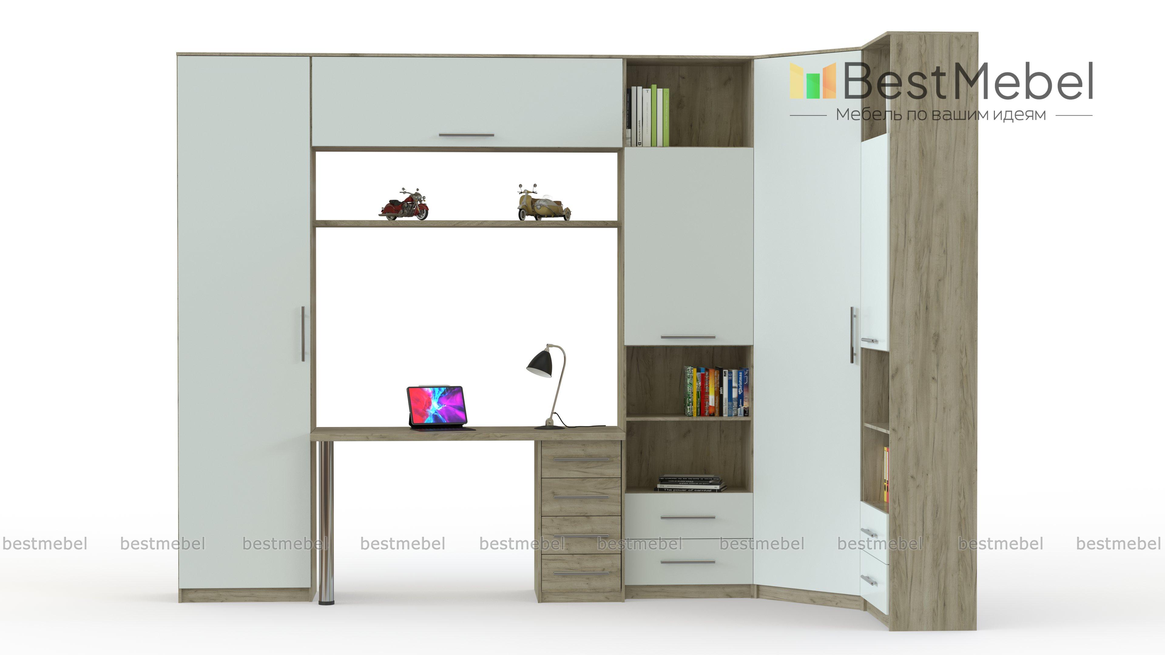 Стенка Патрик-3 BMS – это современная модель в коричнево-бежевой гамме для молодежной комнаты, гостиной, спального интерьера. В единой композиции гармонично совмещены продуманная система хранения и рабочее место, позволяя экономить пространство. В комплекте угловой однодверный шкаф, комбинированные колонки, пенал, письменный стол с тумбой и навесная полка. Гладкие фасады распашных дверей и ящиков просты в уходе и оснащены практичными ручками-рейлингами. Купить стенку Патрик-3 BMS вы сможете в нашем интернет-магазине.