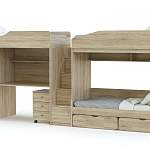 Трехъярусная кровать Миф 10.6 BMS – компактная многофункциональная модель с тремя спальными местами и учебной зоной. Две кровати верхнего яруса оборудованы защитными бортиками и лестницей-стеллажом с ящиками под ступеньками. Первый ярус – кровать с выкатными ящиками, столешница, тумба на колесиках и распашной шкафчик для одежды. Купить трехъярусную кровать Миф 10.6 BMS, подобрав цветовое сочетание, вы сможете в нашем интернет-магазине.
