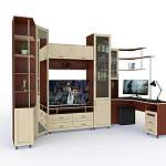 Угловая стенка с компьютерным столом Дени BMS поможет эффективно использовать пространство и оборудовать комфортную молодежную комнату. Композиция П-образной формы включает в себя шкаф-трапецию для одежды с зеркальным фасадом, комбинированный стеллаж, застекленный книжный шкаф, секцию с тумбой под ТВ и полкой и угловой компьютерный стол с тумбой и надстройкой на хромированных опорах. Рамочные фасады долговечны и выполняются в древесных тонах на выбор. Купить угловую стенку с компьютерным столом Дени BMS приглашаем в наш интернет-магазин.