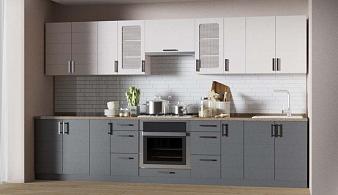 Прямые серо-белые кухни в Москве
