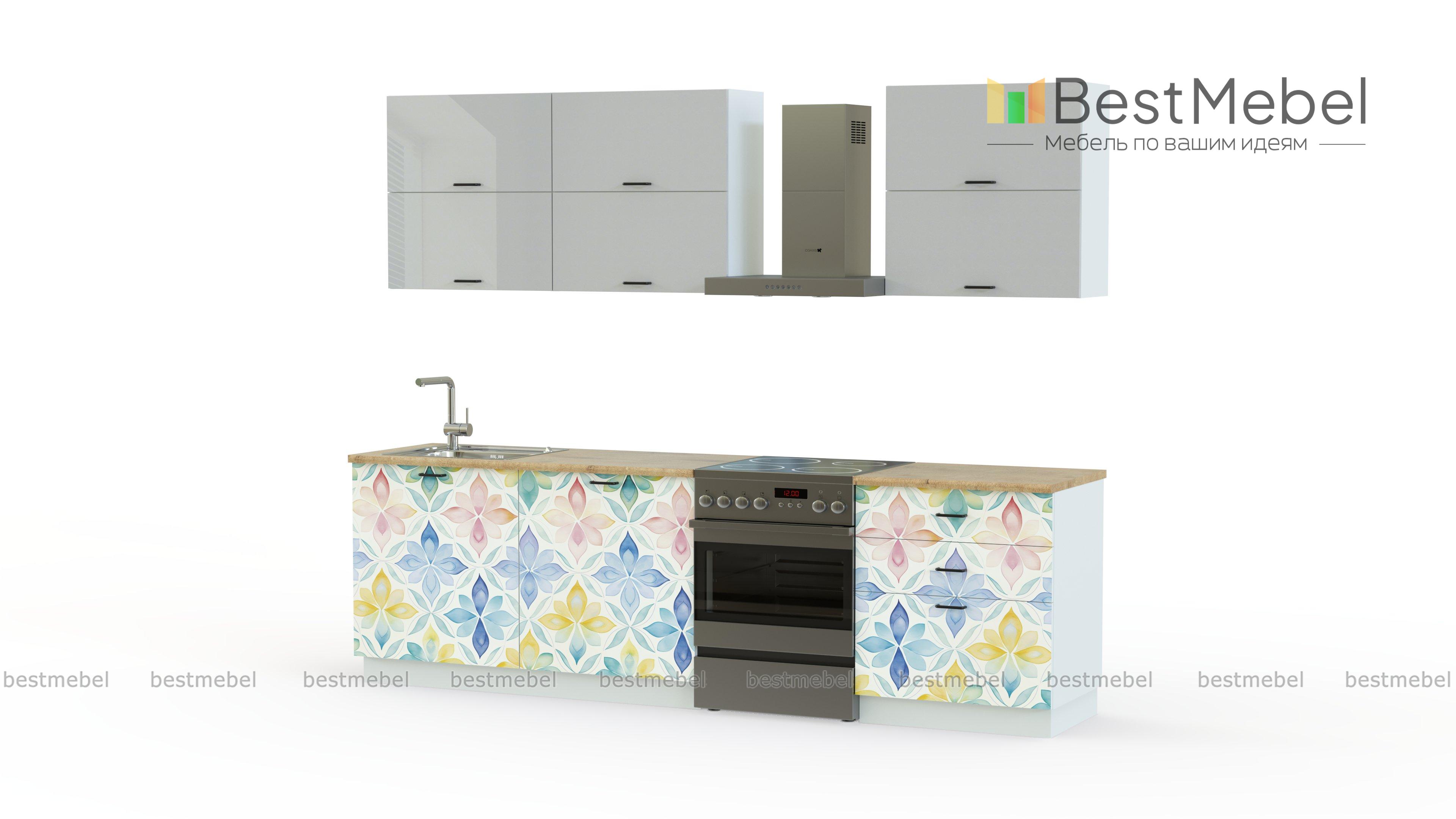 Кухня Альберта 13 BMS выполнена в спокойной нейтральной гамме, которая настраивает на комфортное времяпрепровождение. Светлый глянец верхних фасадов, нежный орнамент на нижних и природный рисунок столешницы создают стильный микс. Для вашего удобства распашные шкафы дополнены тумбой с тремя выдвижными ящиками и навесными модулями с дверцами, открывающимися вверх. Купить кухню Альберта 13 BMS, изготовленную по вашим размерам, приглашаем к нам в интернет-магазин.