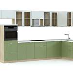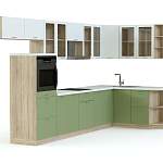 Кухня Киви-5 BMS поможет оборудовать просторную столовую в современном стиле. Угловая конструкция выгодно использует свободное пространство, а разнообразие входящих в комплект модулей позволит создать максимально комфортный интерьер и разместить все необходимое, от столовых приборов до бытовой техники. Лаконичная по форме, кухня смотрится эффектно и создает позитивное настроение благодаря гармоничному сочетанию свежих глянцевых оттенков навесных секций и матовых поверхностей под массив дерева нижней части. Купить кухню Киви-5 BMS, подобрав необходимые параметры, вы сможете в нашем интернет-магазине.
