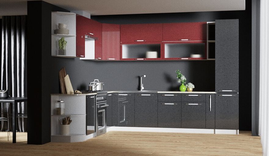 Кухня Ксения угловая 3 BMS отличается крупными габаритами, вместительностью и предназначена для меблировки просторных помещений. Модульный комплект Г-образной формы выгодно использует возможности планировки и поможет подобрать максимально комфортное сочетание элементов. Помимо стандартных распашных и выдвижных шкафов кухня оборудована открытыми торцевыми полками, бутылочницей, высоким пеналом. Глянцевые фасады эффектны, износостойки и просты в уходе. Купить кухню Ксения угловая 3 BMS вы сможете в нашем интернет-магазине по привлекательной цене.