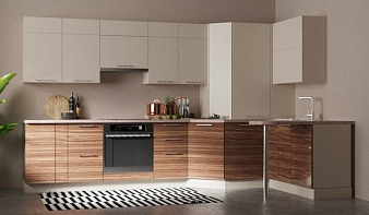Угловая кухня с барной стойкой Кентуки BMS дополнит интерьер небольшой кухни или студии. Простоту ухода и эстетичный вид обеспечит гарнитуру практичное цветовое решение – нижние фасады с имитацией текстуры дерева и светлые навесные шкафчики. Угловая форма позволит сэкономить пространство и обеспечит отличную вместительность, а оригинальной деталью станет скругленная барная стойка на хромированной опоре. Купить угловую кухню с барной стойкой Кентуки BMS по доступной цене вы сможете в нашем интернет-магазине.