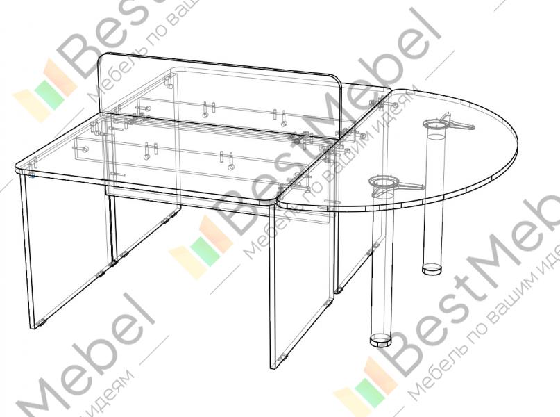 Бенч-система Мадлен 2 BMS отличается компактными размерами и будет востребован как в офисах открытого типа, так и небольших помещениях. Мини-композиция включает в себя два компьютерных столика с эргономично вырезанными столешницами и скругленный приставной элемент на хромированных опорах. Между собой рабочие места разделены глухой перегородкой. Купить бенч-систему Мадлен 2 BMS и сэкономить полезную площадь, не экономя на функциональности, вам поможет наш интернет-магазин.
