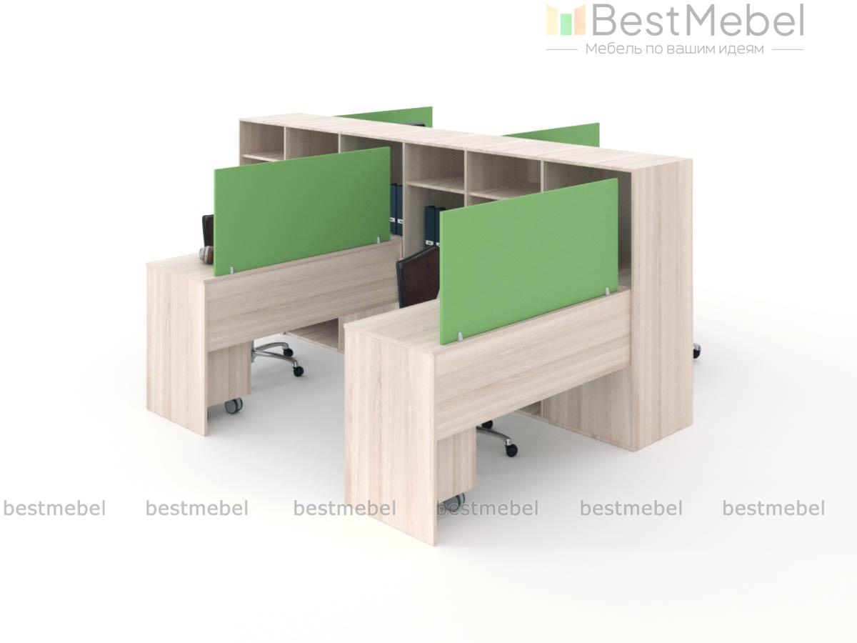 Бенч-система Профиль BMS станет практичным решением для меблировки современного открытого офиса. Композиция объединяет четыре стола, опирающиеся одной стороной на расположенный по центру стеллаж с нишами и раздвижными отделениями для документов. Для хранения канцелярских принадлежностей и личных вещей сотрудников предназначены выкатные тумбы с ящиками, оснащенными замками. Система выполнена в светлых древесных тонах с яркими акцентами в виде разделительных перегородок. Купить бенч-систему Профиль BMS приглашаем в наш интернет-магазин.