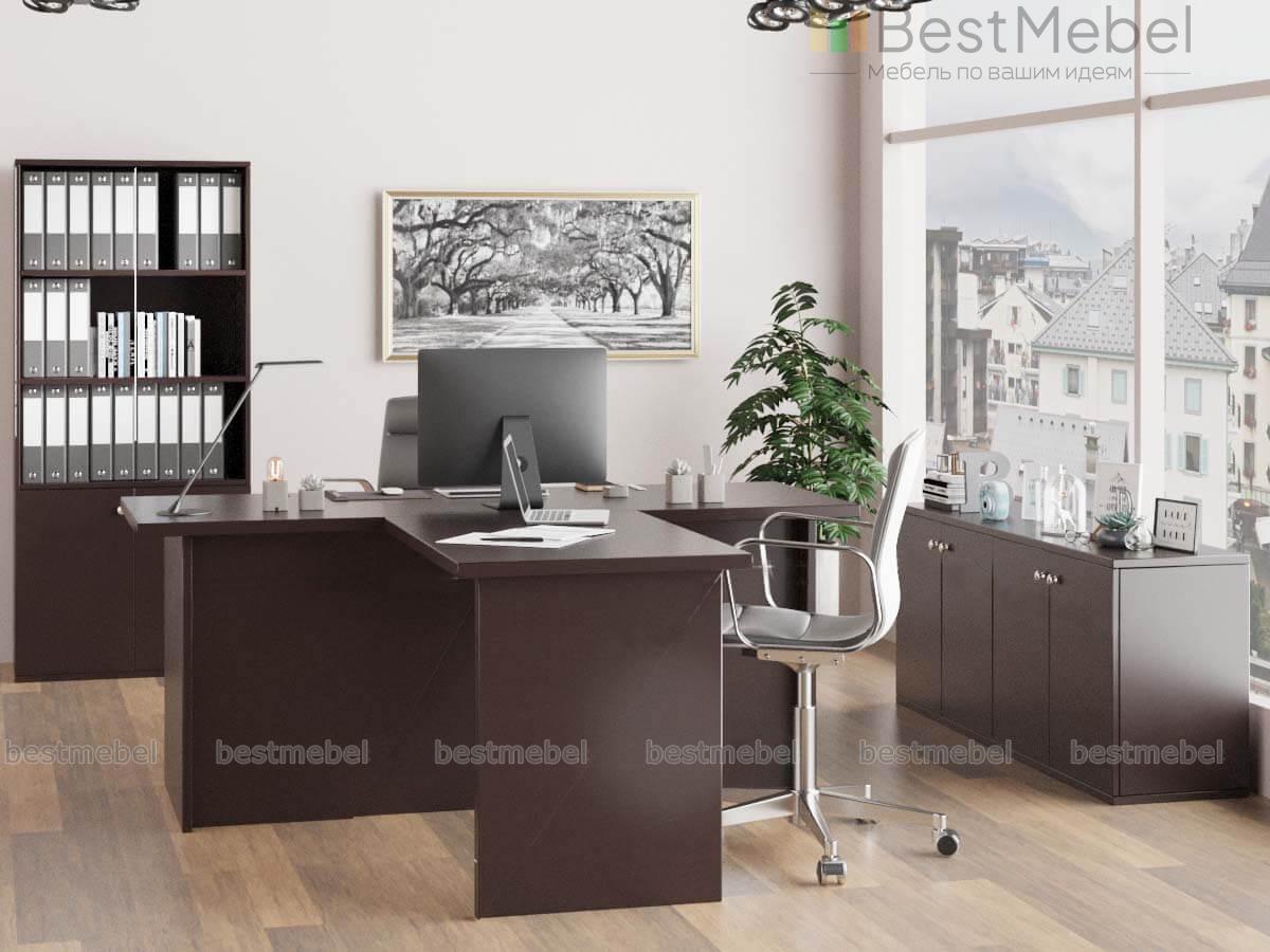 Кабинет руководителя Греция 4 BMS – это современный эконом-вариант, в котором качество исполнения сочетается с функциональностью и актуальным дизайном. Композиция в темных древесных тонах станет универсальным решением для офисных интерьеров разного типа. Комплект состоит из рабочего стола с брифинг-приставкой, широкой комбинированной тумбы и шкафа для документов со стеклянными дверцами. Купить кабинет руководителя Греция 4 BMS по доступной цене приглашаем к нам в интернет-магазин.