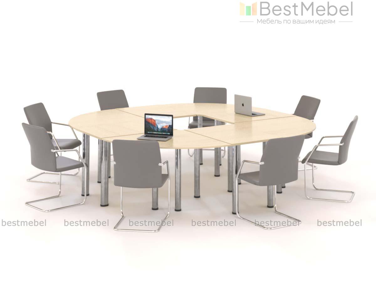 Стильный квадратный стол для переговоров со округленными углами. Модель подойдет для комфортного размещения 8 человек. Проведение конференций, переговоров, совещаний в солидной компании просто не обойдется без подобного изделия. Легкая, не громоздкая конструкция займет не много места и будет смотреться идеально в любом интерьере.