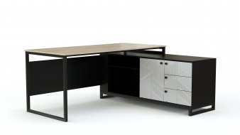 Стол руководителя Эмма 12 BMS имеет современный дизайн и практичную конструкцию, которая обеспечивает свободный доступ к оргтехнике и рабочим материалам. Модель на опорной тумбе отличается просторной рабочей поверхностью и удобной системой хранения из открытой секции с полкой, распашного отделения и трех выдвижных ящиков. Однотонные и древесные поверхности сочетаются с геометрической фрезеровкой и металлом. Купить стол руководителя Эмма 12 BMS для офиса в стиле лофт вы сможете на сайте нашего интернет-магазина.