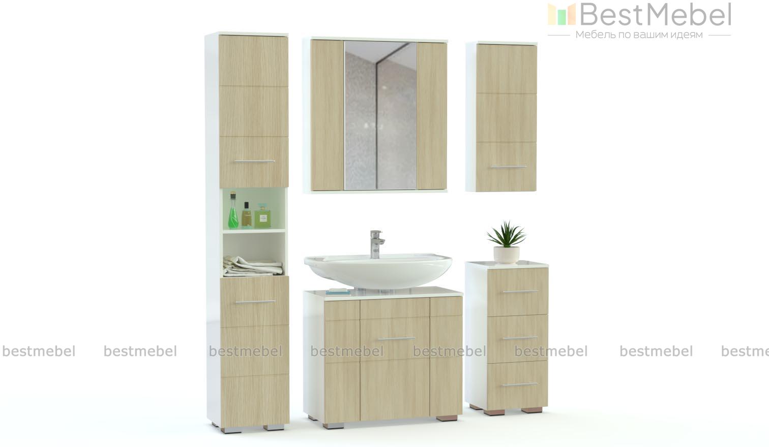 Комплект для ванной Фруст 1 BMS включает в себя все необходимое для создания комфортного современного интерьера. В комплекте напольные и навесные модули – широкая тумба под раковину, тумба с тремя выдвижными ящиками, комбинированный с нишами пенал, распашной шкафчик и зеркальный шкаф. Глянцевые фасады с горизонтальной фрезеровкой и ручками-рейлингами гармонично вписываются в минималистичные интерьеры. Купить комплект для ванной Фруст 1 BMS приглашаем в наш интернет-магазин с возможностью изменения размеров.
