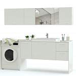 Комплект для ванной комнаты Агава 5 BMS поможет органично вписать в интерьер раковину и бытовую технику, а также разместить гигиенические принадлежности и бытовую химию. Тумба под раковину с широкой столешницей, выдвижными, распашными отделениями и нишей под стиральную машину дополнена навесными шкафами – зеркальным и с глухими фасадами. Лаконичные модули выполнены в нейтральном бежевом цвете с хромированной фурнитурой. Купить комплект для ванной комнаты Агава 5 BMS приглашаем в наш интернет-магазин.