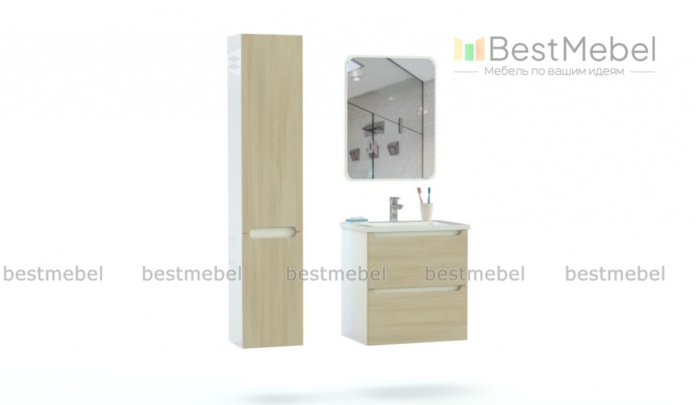 Комплект для ванной комнаты Хьюстон 4 BMS отличается минималистичным дизайном, а скругленные углы предметов делают пользование особенно комфортным и безопасным. Композиция включает в себя тумбу под раковину, оборудованную двумя выдвижными ящиками для хранения уходовых средств, зеркало и вместительный пенал. Лаконичные по форме предметы без лицевой фурнитуры выполнены в светлом древесном оттенке, подвесная конструкция визуально облегчает интерьер. Купить комплект для ванной комнаты Хьюстон 4 BMS приглашаем в наш интернет-магазин.