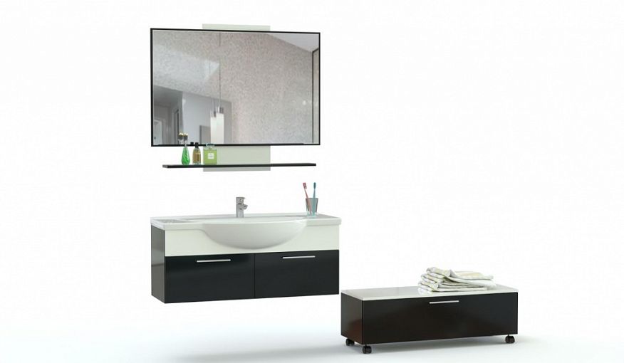 Комплект для ванной Кванта 3 BMS отличается современным эргономичным дизайном. Композиция состоит из навесной тумбы под раковину с двумя выдвижными ящиками, панно с зеркалом и открытой полочкой для хранения мелочей и широкой выкатной тумбы с откидной вниз дверцей. Сочетание влагостойкого белого глянца с элементами в контрастных черных тонах делает комплект универсальным. Купить комплект для ванной Кванта 3 BMS вы сможете в нашем интернет-магазине с подбором цвета и фурнитуры.